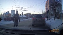 Wkurwiony facet rozbija pięścią przednią szybę