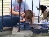 Kid gets stuck lol