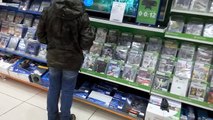 a kid stomps his phone in a game shop