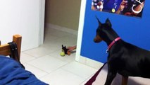 funny scared doberman
