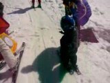 Premier pas de Mathis en ski. Piste baby du Semnoz, le coquin préfère le schuss aux virages...