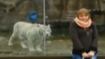 Un tigre blanc s'attaque à une femme... à travers une vitre !