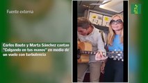 Carlos Baute y Marta Sánchez cantan "Colgando en tus manos" en medio de un vuelo con turbulencia