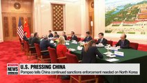 U.S. urges China to maintain high level of sanctions pressure on North Korea