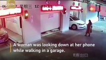 Occupée à téléphoner, elle se retrouve piégée dans un garage... Coincée