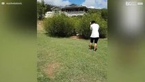 'Protective' mother duck chases toddler away from her duckling
