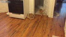 Ce chat devient fou avec un carton attaché à sa queue !
