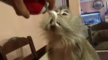 Ce singe kiffe la crème chantilly à la bombe !