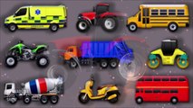 Street Vehicles for Kids. Cars and Trucks. Ambulance Double deker School bus Tractor Garbage truck