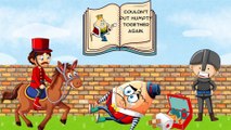 Alright, Humpty Dumpty is at it again. He wont stop sitting on walls, no matter how dangerous it is. This time something really BIG makes him fall. Want to find out what? Watch this rhyme!\r \r Humpty Dumpty sat on a wall lyrics : \r \r Humpty Dumpty sat on a wall,\r Humpty Dumpty had a great fall;\r All the kings horses and all the kings men\r Couldnt put Humpty together again.\r \r Humpty Dumpty sat and he cried\r The men and the horses tried and tried\r But poor Humptys shell was cracked\r And for their failure the soldiers got sacked\r \r Humpty Dumpty sat on a wall,\r Humpty Dumpty had a great fall;\r All the kings horses and all the kings men\r Couldnt put Humpty together again.