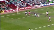 This is the intro for Ford Super Sunday from 1992. The very first live Premiership match on Sky Sports was between Nottingham Forest and Liverpool at the City Ground. This match ended 1-0 to Nottingham Forest after a last minute goal by Teddy Sherringham. The term "battle of the giants" did not prove very appropriate as the legendary Brian Clough's Nottingham Forest went on to get relegated, while Graeme Souness' Liverpool side could only manage a mid table finish, while Man Utd went on to win their first top flight league title for 26 years, beating out unlikely challengers Norwich City. And of course there was that theme tune we all remember and love. Greatest sports theme tune ever, and it went something like this: