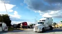Ce camion ignore les klaxons d'un train... et se fait enfoncer au passage à niveau !
