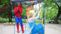 Elsa and Spiderman fight w/ Joker on the playground