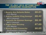 NTG: Top 10 July 2012 Optometrist Licensure Examination result