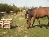 Voici la première rencontre entre l'étalon arabe "Elymes**" et ma jument selle français "Junon de Bellevue"!!! le beau couple qui va me donner un beau poulain! vive les Écuries des truités!!
