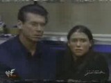 This was supposed to be an interview with Vince and Stephanie McMahon about Shane and his actions as of late, but what happens when a member of the Ministry crashes the party? This is from the 4/19/99 Raw.