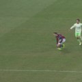 Sivasspor GK Mamadou Samassa collapses on field and leaves in ambulance after collision with Tyler Boyd.