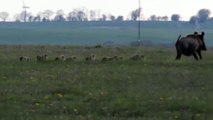 Quand une meute de sangliers et leurs marcassins traversent une route