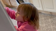 A funny video has emerged of a baby smearing chocolate spread all over her parents' kitchen.