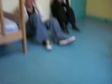 Célia en plein fou rire dans notre chambre à Caen