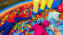 SPIDERMAN RAINBOW POO COLORS w/ Ball Pit Show Frozen Elsa & Pink Spidergirl - Superheroes