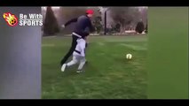 رونالدو وهو يدرب إبنه على لعب كرة القدم