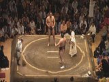 Natsu basho 2008. Huitième journée. Combat entre le yokozuna Hakuhô et le komusubi Kisenosato.