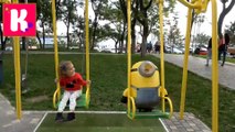 Миньоны на прогулке и подушка пердушка Прикол Катя гуляет с миньоном на детской площадке и в кафе Minions for a walk