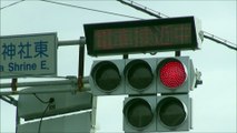 踏切のある矢印信号機(踏切作動時)