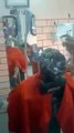 حلاق يشعل النار في راس زبونه