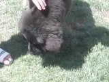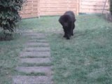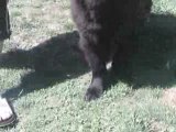 un chiot Terre neuve a la decouverte de l eau