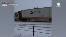 Trucks slide off I-80 amid snowy travel chaos