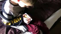 Child falls with excitement Nintendo Wii Just Dance 2 Satisfaction. Excited fall, fail.
