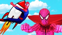 Spiderman & Pink Spidergirl Fly To The Moon! w Frozen Elsa Anna & Kristoff, Batman and Supergirl )