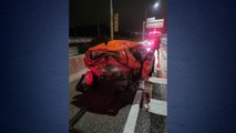 택시가 고속도로 안전유도 차량 추돌...2명 부상 / YTN