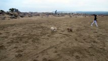 Deux hommes se battent sur la plage