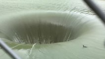 Un canard disparaît dans un trou d'eau...