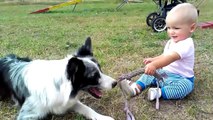 Border Collie Playing with Baby Child - Funny Videos of Dog and Baby