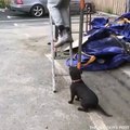 Puppy climbs up ladder