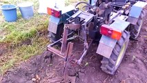 Homemade tractor digging potatoes