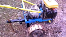 Homemade walk behind tractor. Plowing