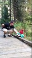 Quand la petite fille perd l'équilibre du haut du pont, la mère ne bouge pas et s'écrie qu'elle a réussi à tout filmer