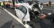 Bolu'da, D-100 Karayolu üzerinde meydana gelen trafik kazasında ikiye bölünen araçta bulunan 3 kişi mucizevi bir şekilde yaralı kurtuldu. Bolu'da, D-100 Karayolu üzerinde yağmur nedeniye kaygan yolda kontrolden çıkarak yön levhasına çarpan ve çarpmanın etkisiyle ikiye bölününe araçta bulunan 3 kişi mucizevi bir şekilde hayatta kaldı. Facianın eşiğinden son anda dönülen trafik kazasında, otomobil sürücüsü hafif yaralanırken, araçta bulunan 2 kişi ağır yaralandı. ÇARPMANIN ETKİSİYLE ARAÇ İKİYE BÖLÜNDÜ Kaza, saat 23.00 sıralarında D-100 Karayolu Ankara istikametinde meydana geldi. Haber