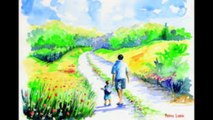 Peinture de Serge-BENHAIM-Coucher de soleil sur l'étang