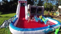 HUGE INFLATABLE SHARK WATERSLIDE and OUTDOOR BOUNCER BallPit Frozen Beach Ball, Sharks