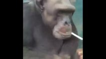 Sigarasını yakıp içen maymun