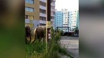 Ces éléphants se baladent en pleine rue d'une ville en Sibérie