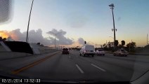 Ces deux pneus énormes rebondissent sur l'autoroute