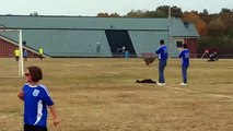 Cette biche traverse un terrain de foot et marque un but !