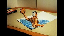 Draw 3d water polo player - Anamorphic Drawing - Optical illusion